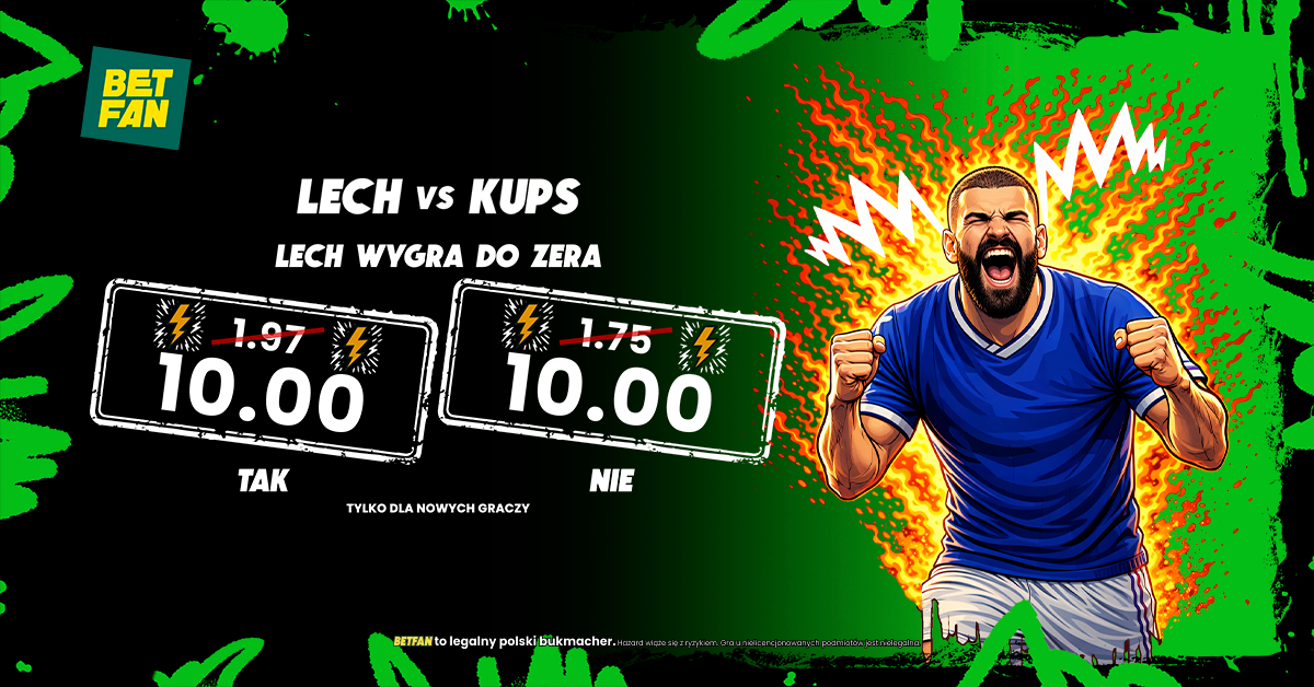 BETFAN przygotował z tej okazji specjalną promocję. Polski legalny bukmacher daje możliwość zagrania zakładu na wygraną Lecha Poznań do zera po mega kursie 10.00! Co ciekawe, promocja łączy się z bonusem powitalnym, a więc otrzymasz bonus od depozytu i freebet 25 zł (przy wpłacie min. 75 zł)! Dodatkowo możesz skorzystać z bonusów 100% do 200 PLN także od drugiej i trzeciej wpłaty. Promocja dostępna jest dla nowych graczy, którzy założą konto z kodem GRAMGRUBO. To najwyższy bonus na rynku!