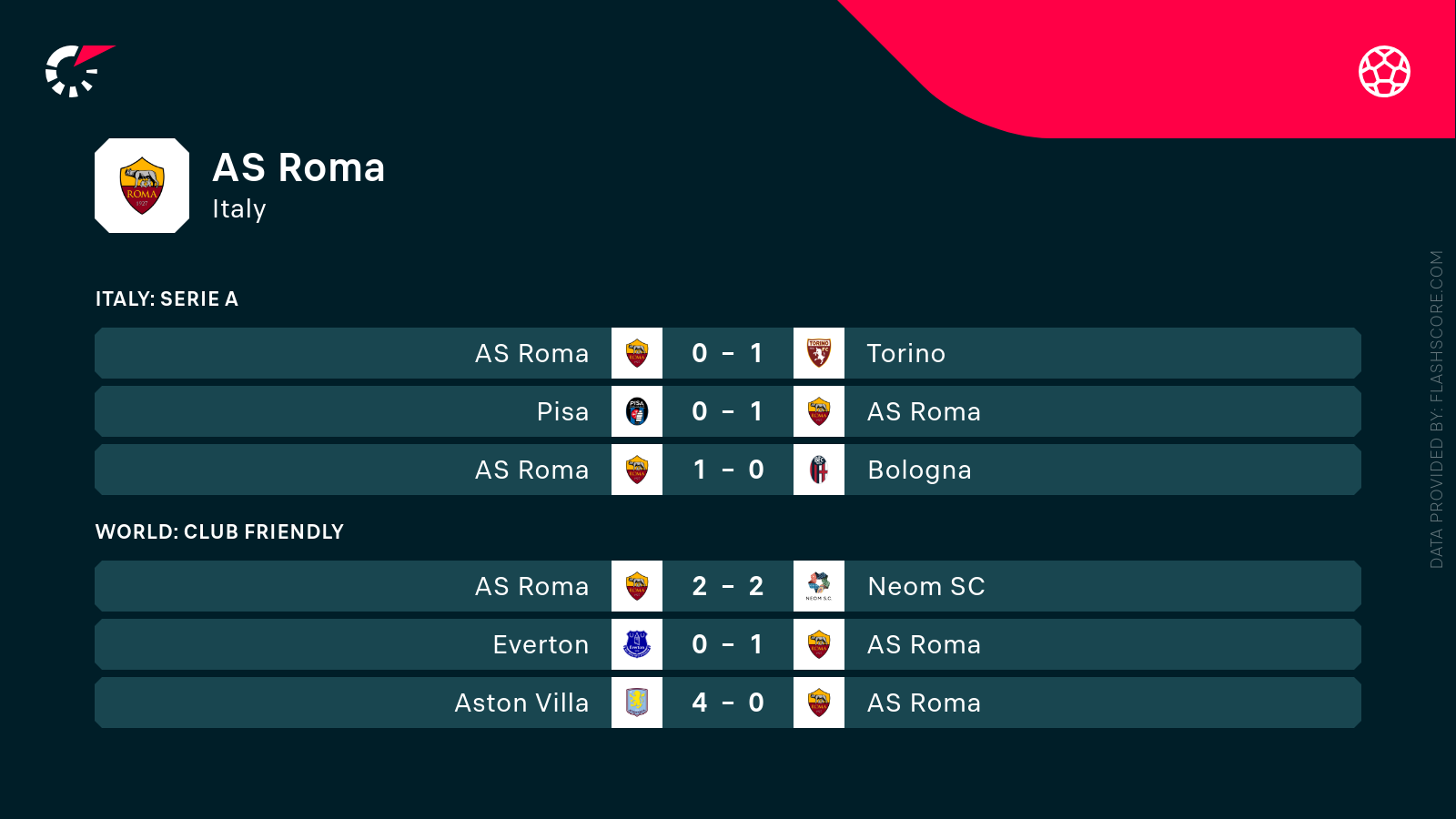 AS Roma: Svilar – Celik, Mancini, Ndicka – Rensch, Cristante, Kone, Angelino – Soule, El Shaarawy – Ferguson