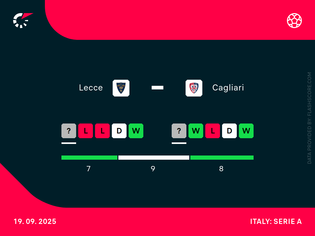 - Cagliari wygrało ostatni mecz przeciwko Lecce 4:1