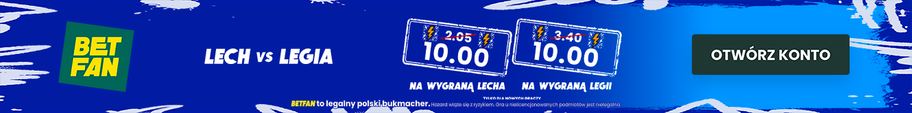 - 176 zł na konto główne za wygraną Lecha lub Legii w hicie Ekstraklasy