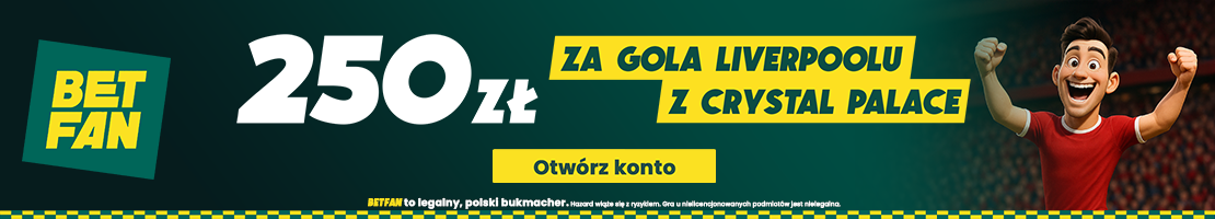 Odbierz 250 zł za gola Liverpoolu w starciu z Crystal Palace. Otwórz konto z kodem promocyjnym BETFAN „GRAMGRUBO”
