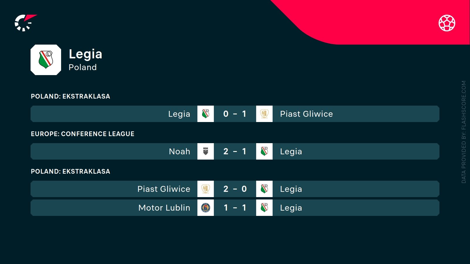 - Legia zdobyła dwie bramki w trzech ostatnich spotkaniach pucharowych.