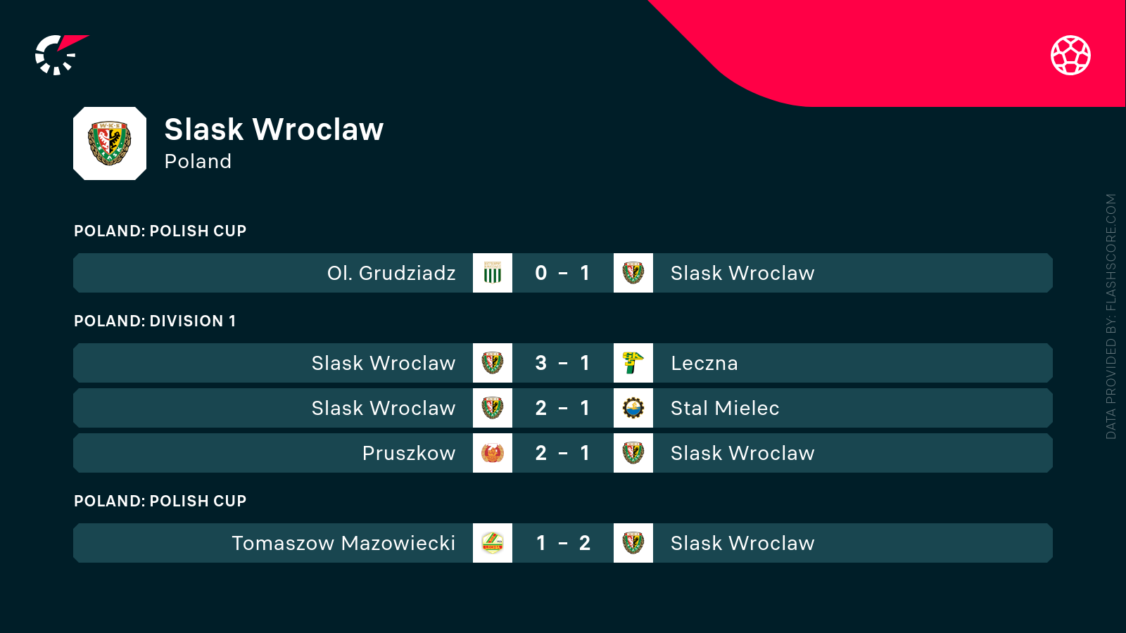 • Przemysław Banaszak zdobył trafienie w każdym z 3 poprzednich meczów ligowych Śląska.