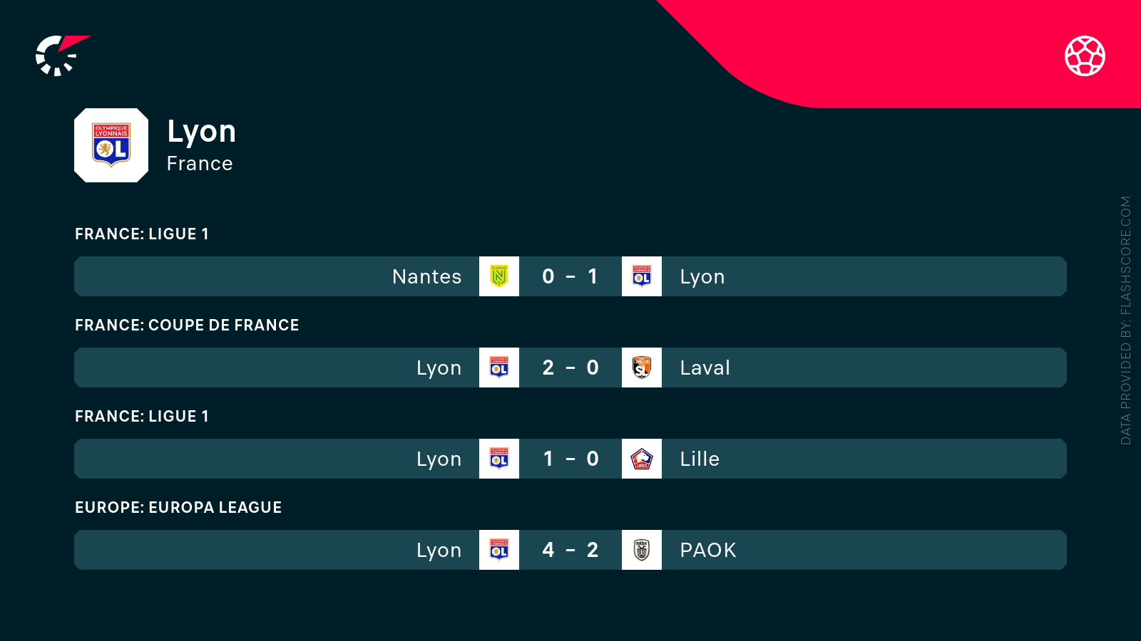 - Lyon w rozgrywkach ligowych wykonuje średnio 5.71 kornerów na zawody.