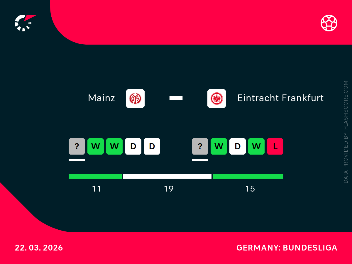 Drużyna Mainz zajmuje obecnie 14. miejsce w tabeli z dorobkiem 27 punktów. Choć pozycja ta nie napawa optymizmem, ich ostatnia forma budzi respekt – w ostatnich pięciu meczach ligowych nie zaznali goryczy porażki, notując między innymi cenne remisy z Bayerem Leverkusen oraz VfB Stuttgart. Mainz pod wodzą obecnego sztabu stawia na solidną organizację gry defensywnej i walkę do ostatniego gwizdka, co pozwoliło im punktować nawet w starciach z faworytami. Brak kluczowego pomocnika, jakim jest Nadiem Amiri, jest dużym osłabieniem, ale zespół nadrabia to kolektywem.