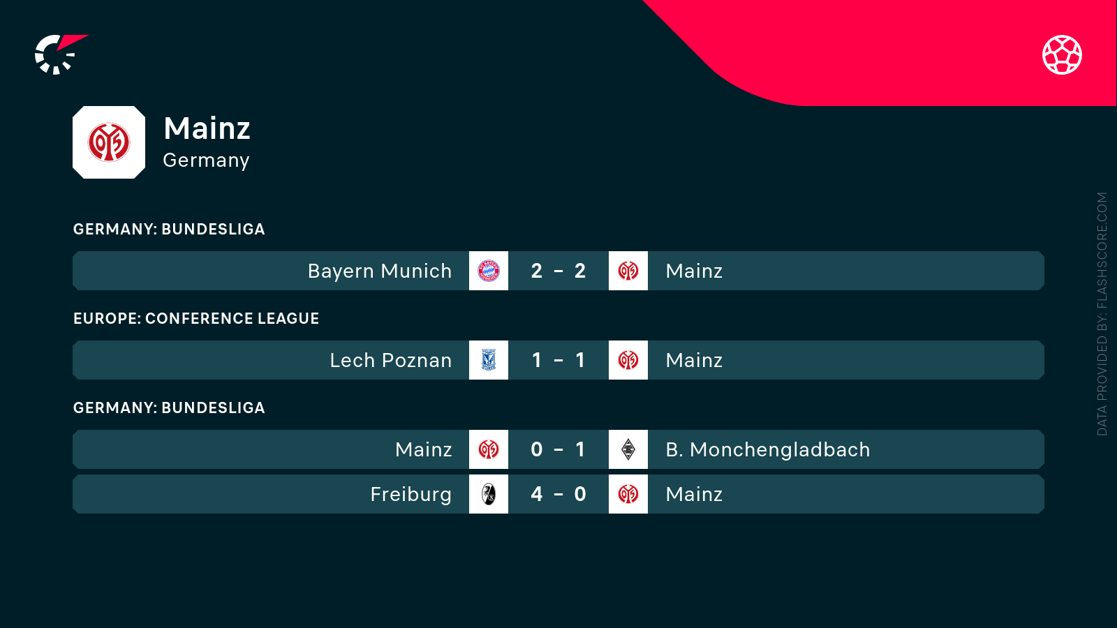- Over 9.5 rzutów rożnych sprawdził się w 2 z 5 niedawnych spotkań Mainz.