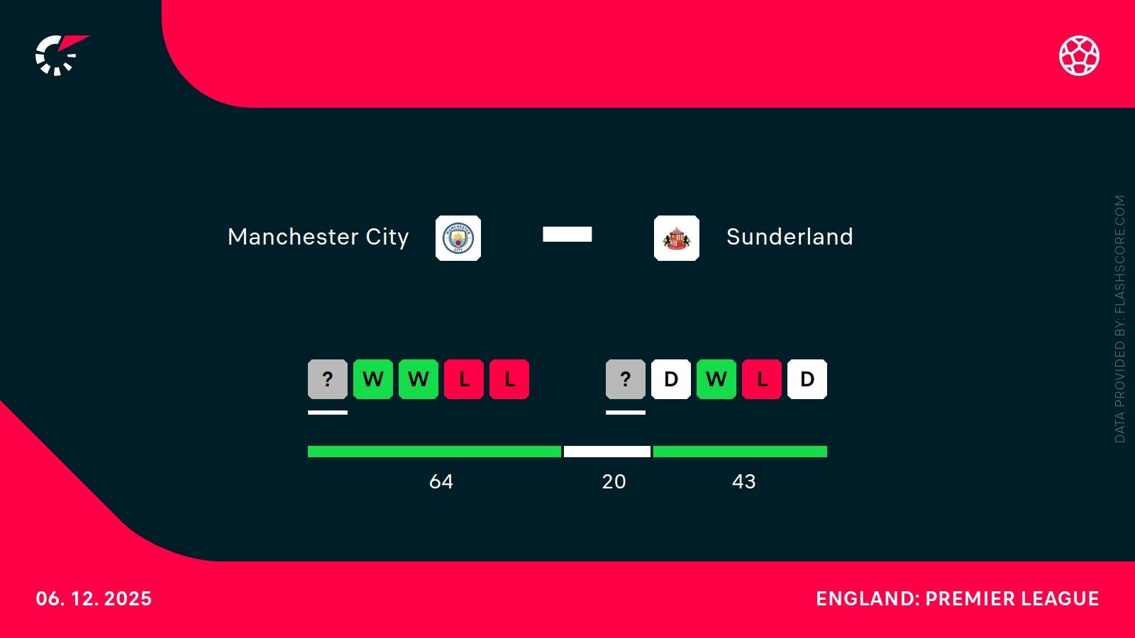 Gdzie obejrzeć transmisję z tego starcia? Mecz Manchester City – Sunderland odbędzie się na Etihad Stadium w Manchesterze, 6 grudnia o godzinie 16:00. Spotkanie będzie można oglądać na antenie Canal+ Extra 1. Wynik będzie można śledzić na stronie flashscore.com oraz w aplikacji Flashscore!