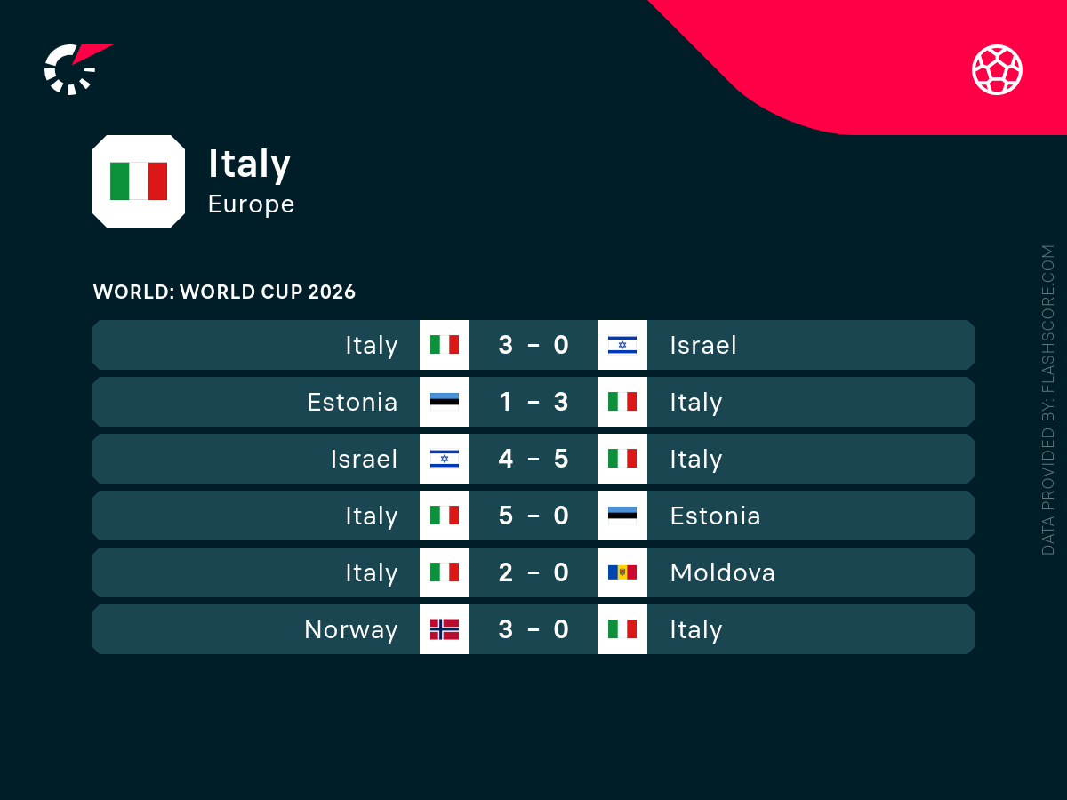 Włochy znajdują się w zupełnie innej sytuacji niż ich rywale, bo po serii pięciu kolejnych zwycięstw, zapewnili sobie już co najmniej drugie miejsce w grupie i pewny udział w marcowych barażach. Pod wodzą nowego selekcjonera Gennaro Gattuso, drużyna zaczęła prezentować się znacznie lepiej w ofensywie, bo w ostatnich czterech meczach Włosi zdobyli aż 16 bramek, a ich gra nabrała płynności i piłkarskiej agresji. Mimo że awans bezpośredni do mundialu jest już praktycznie poza zasięgiem to Włosi wciąż traktują ten mecz jako ważny element przygotowań do baraży i z pewnością będą chcieli zaprezentować dobrą piłkę.