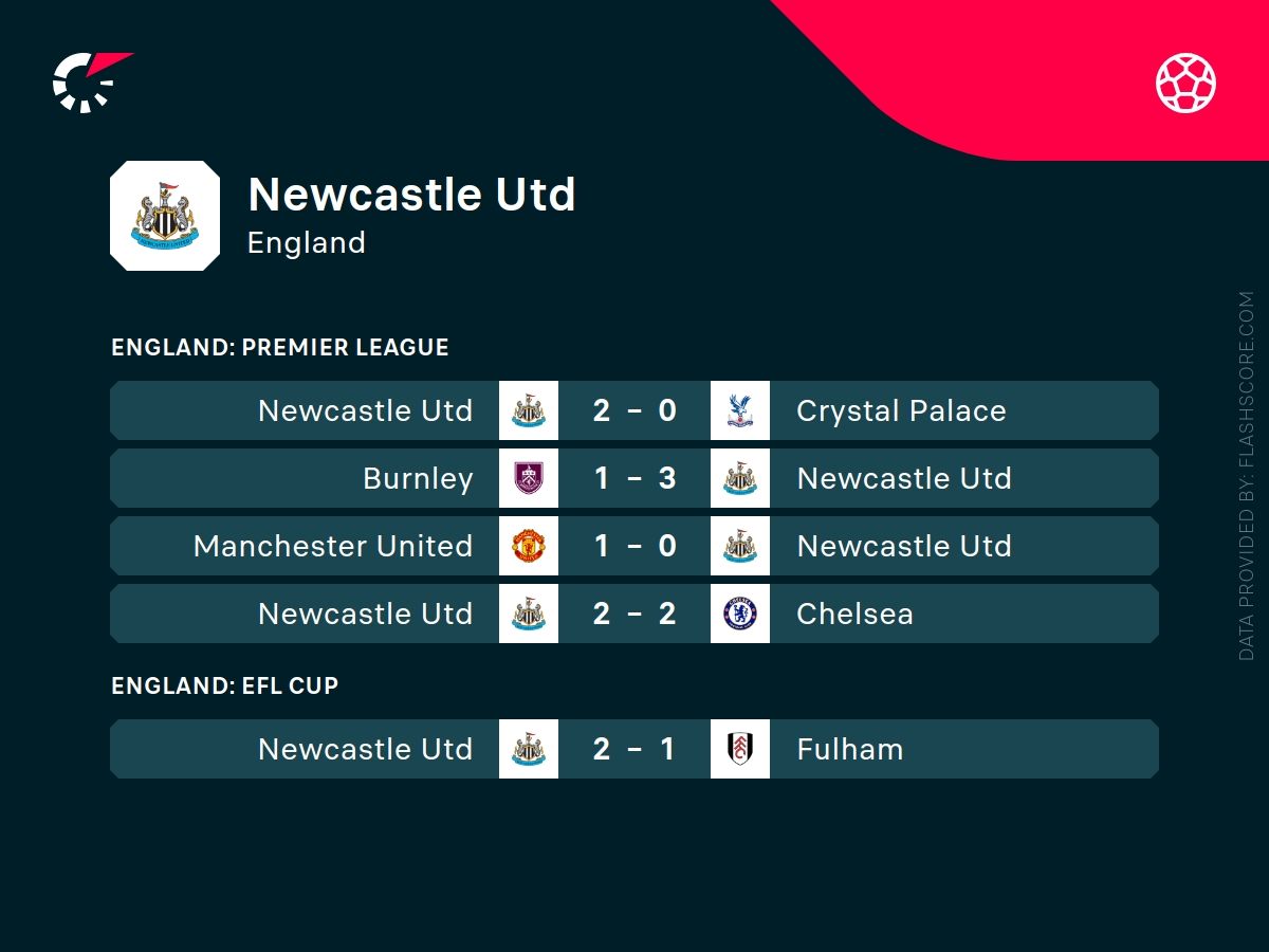 - Newcastle wygrało 2 ostatnie mecze ligowe, strzelając w nich łącznie 5 bramek.