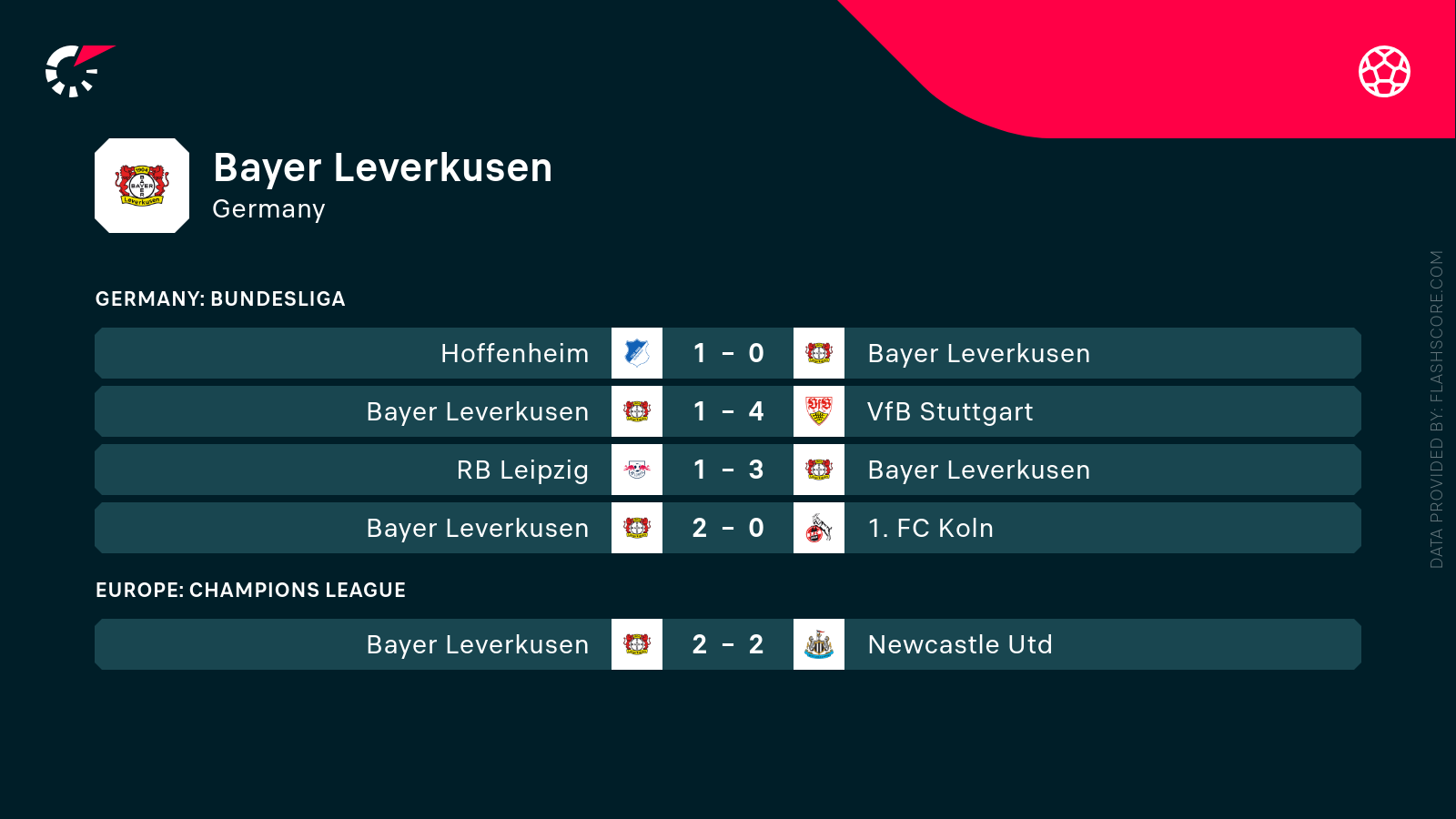 Bayer: Blaswich – Quansah, Andrich, Bade – Arthur, Garcia, Fernandez, Grimaldo – Tillman, Poku – Schick
