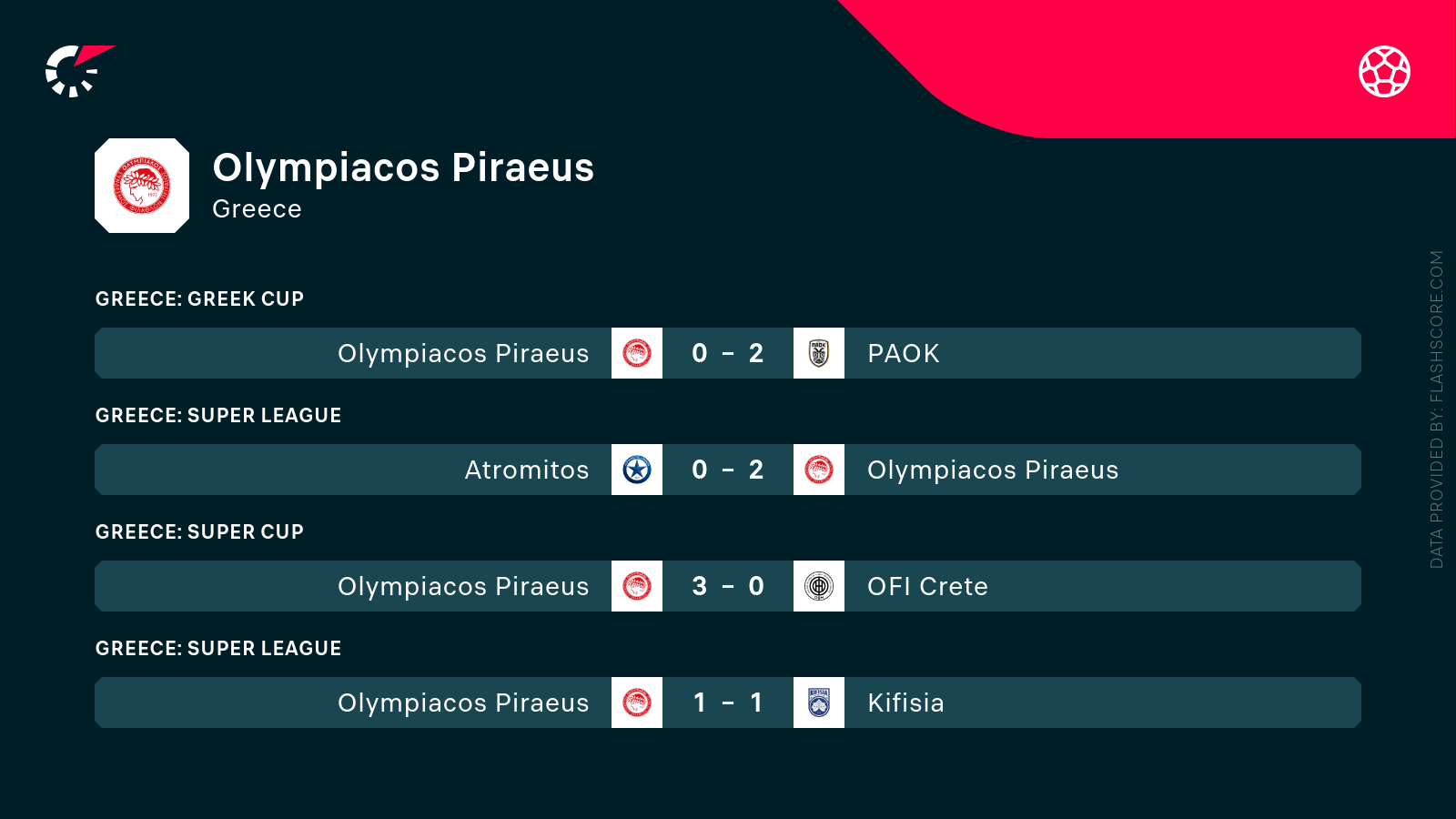 Olympiakos: Tzolakis – Rodinei, Biancone, Retsos, Ortega – Hezze, Mouzakitis – Martins, Chiquinho, Podence – Taremi