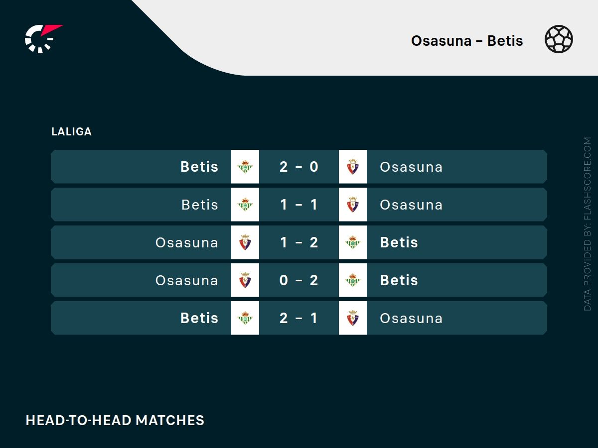 - Betis wygrał 8 z ostatnich 10 bezpośrednich spotkań z Osasuną we wszystkich rozgrywkach.