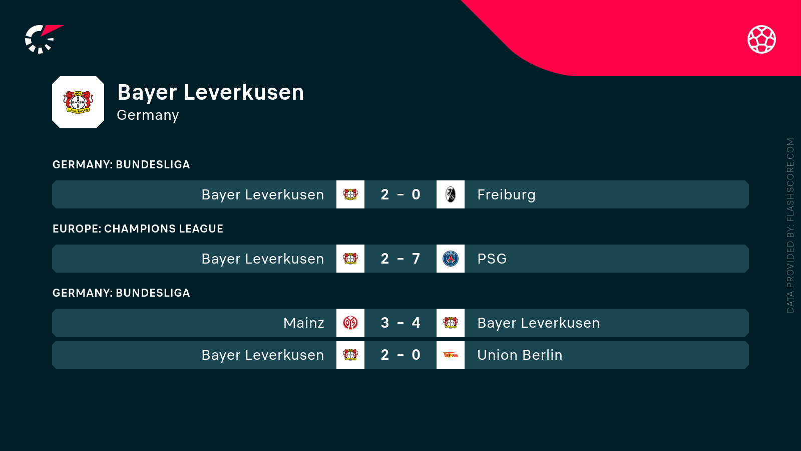 Bayer: Blaswich – Belocian, Bade, Tapsoba – Arthur, Andrich, Garcia, Grimaldo – Hofmann, Seghir – Schick