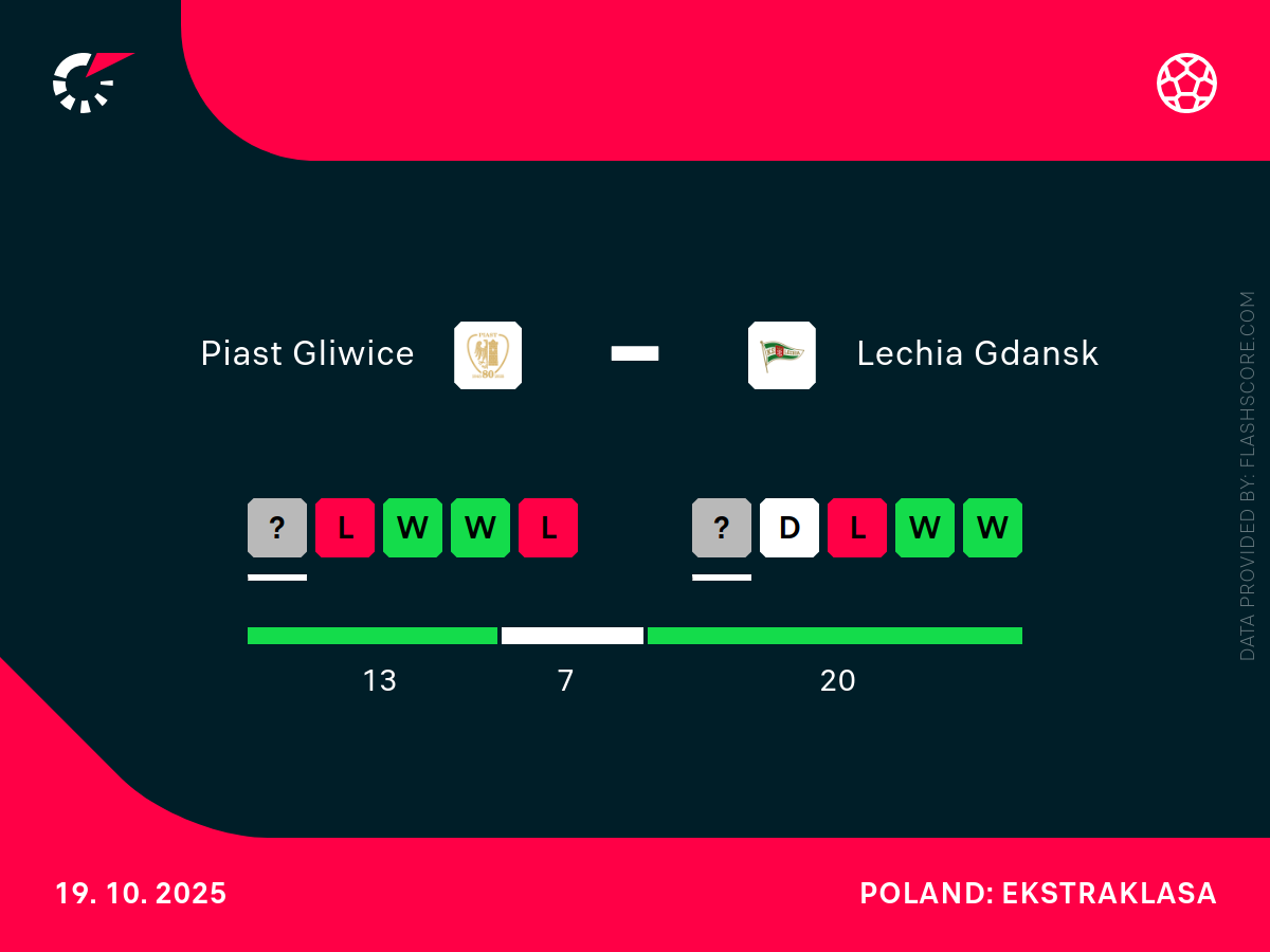 Piast Gliwice – Lechia Gdańsk – analiza typu i statystyki