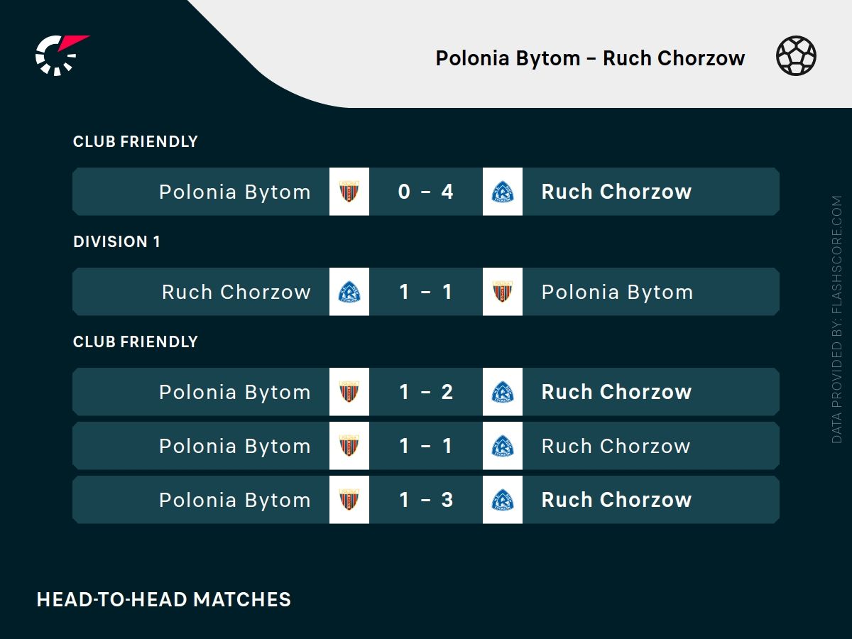 Zespół z Chorzowa, czyli popularni Ruch Chorzów, pod wodzą doświadczonego sztabu, zajmuje 10. miejsce w tabeli, tracąc do niedzielnego rywala tylko jedno oczko. Niebiescy w ostatnich tygodniach prezentowali bardzo ofensywny styl gry, czego dowodem były bramkowe remisy ze Śląskiem Wrocław czy Odrą Opole oraz bolesna porażka 2:3 z Polonią Warszawa. Goście dysponują solidnym potencjałem w ataku, ale ich linia obrony w pięciu ostatnich meczach aż czterokrotnie traciła minimum dwie bramki.