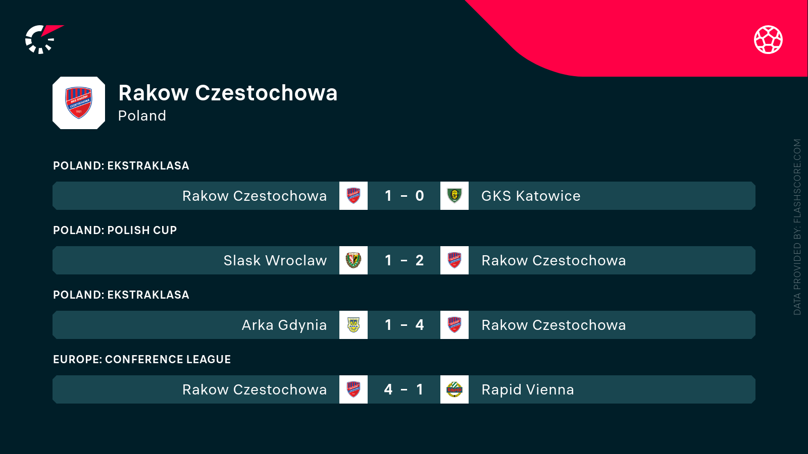 W ostatnich tygodniach odmienia się przez wszystkie przypadki nazwisko Marka Papszuna, który ma być blisko dołączenia do Legii. Paradoksalnie jego obecni zawodnicy w tym czasie spisywali się na boisku wybornie i wygrywali kolejne spotkania w różnych rozgrywkach pnąc się w górę ligowej i europejskiej tabeli. W poprzedni weekend Medaliki nie zagrały może wielkiego spotkania, ale wyszarpały zwycięstwo 1:0 z GKS-em Katowice i wskoczyły na 3. miejsce w Ekstraklasie. Z kolei w Lidze Konferencji Raków pozostaje niepokonany, a dorobek 8 punktów daje mu obecnie 6. lokatę w fazie ligowej.