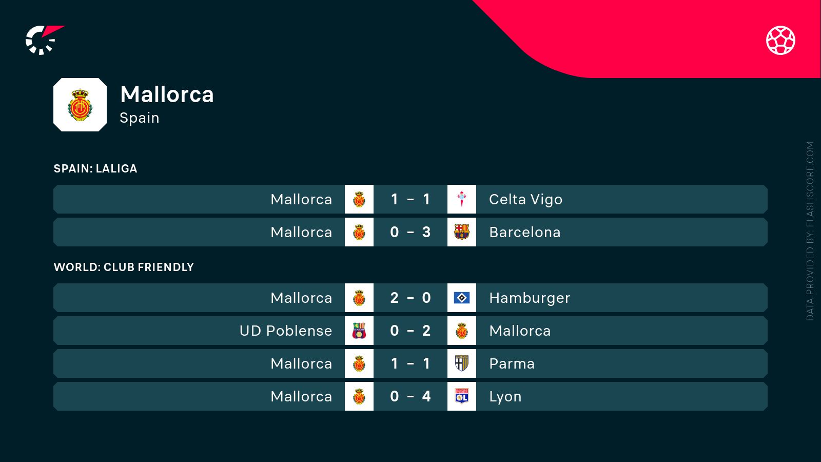 - Mallorca przegrała 1 z 5 niedawnych potyczek.