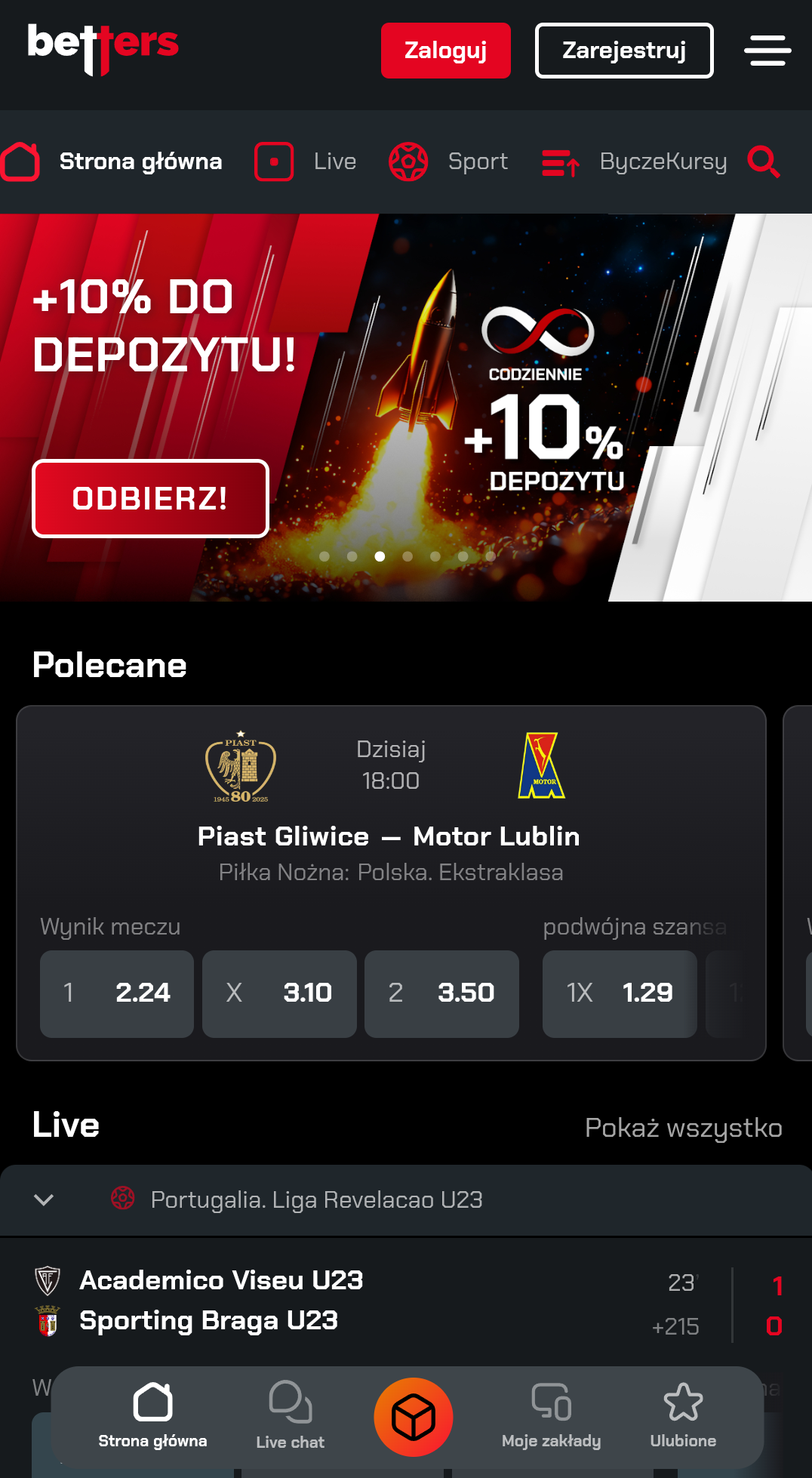 BETTERS oferuje bardzo wysoką ofertę powitalną i wiele promocji dla stałych graczy, co jest obecnie bardzo ważnym elementem, na który doświadczeni gracze zwracają uwagę. Poniżej przedstawię najciekawsze z dostępnych promocji, lecz warto pamiętać, że równie wiele atracyjnych promocji, pojawia się w aplikacji/na stronie niespodziewanie, dlatego warto często zerkać na swojego maila czy też na stronę/aplikację!