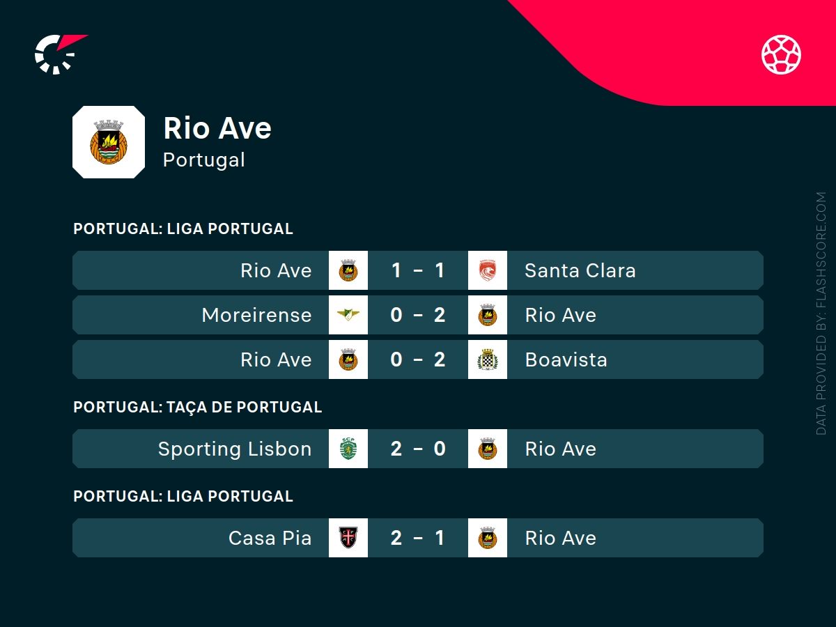 Rio Ave do wtorkowego, domowego pojedynku przystępuje będąc przeciętnej dyspozycji. Podopieczni Petita przegrali w pierwszym spotkaniu półfinałowym 0:2, mogą liczyć jednak przy znakomitym występie i odrobinie szczęścia na odwrócenie wyniku. W ostatnich pięciu spotkaniach ponieśli trzy przegrane, pokonali na wyjeździe Moreirense (2:0) i zremisowali z Santa Clara (1:1). W tabeli Liga Portugal Rio Ave zajmuje 11. pozycję z dorobkiem 33 po 30 meczach.