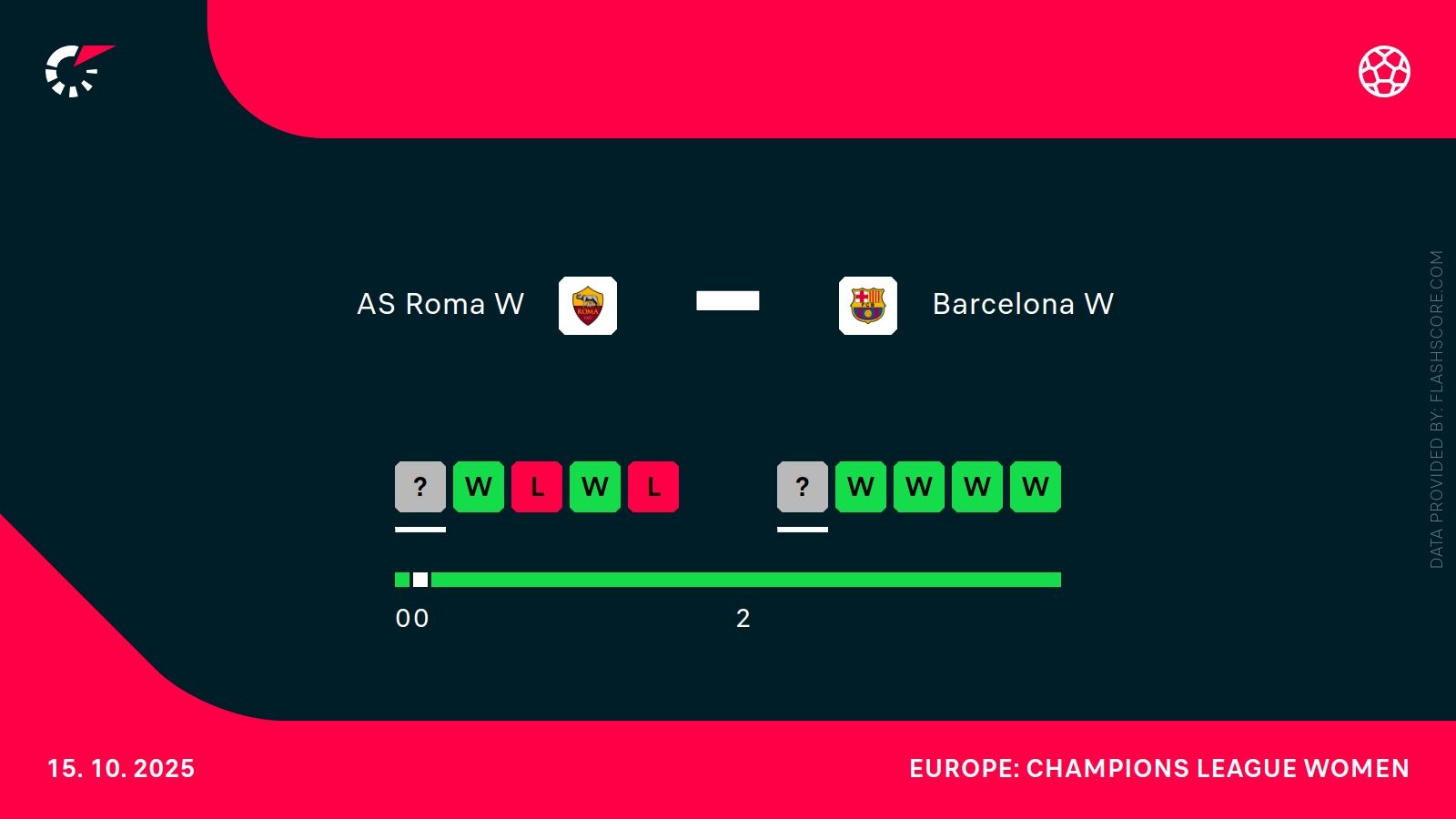 Roma K podejdzie do tego spotkania po porażce w poprzedniej kolejce Ligi Mistrzyń 2:6 z Realem Madryt. Wynik ten pokazał, że jeszcze sporo brakuje im do ścisłej czołówki, Mimo to, nie można lekceważyć włoskiej ekipy. Zespół potrafi być niezwykle groźny w ofensywie, co udowadnia 13 zdobytych bramek w pięciu ostatnich spotkaniach. Defensywa Romy została brutalnie zweryfikowana w Madrycie, jednak siła ataku oraz determinacja na własnym boisku może sprawić problemy.