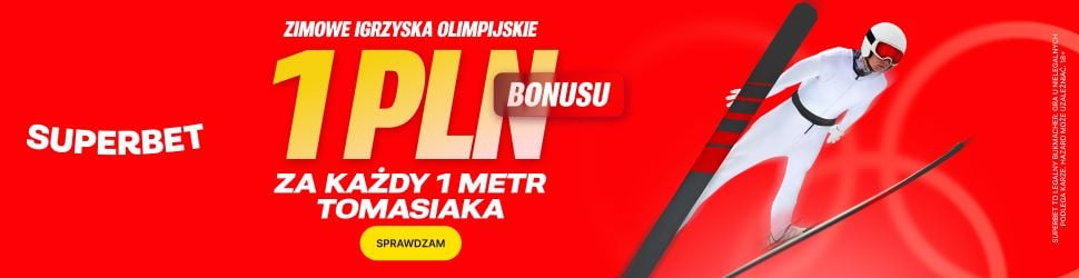 Sprawdź specjalną ofertę od SUPERBET, która daje nam 1 PLN za KAŻDY METR TOMASIAKA W KONKURSIE NA DUŻEJ SKOCZNI!