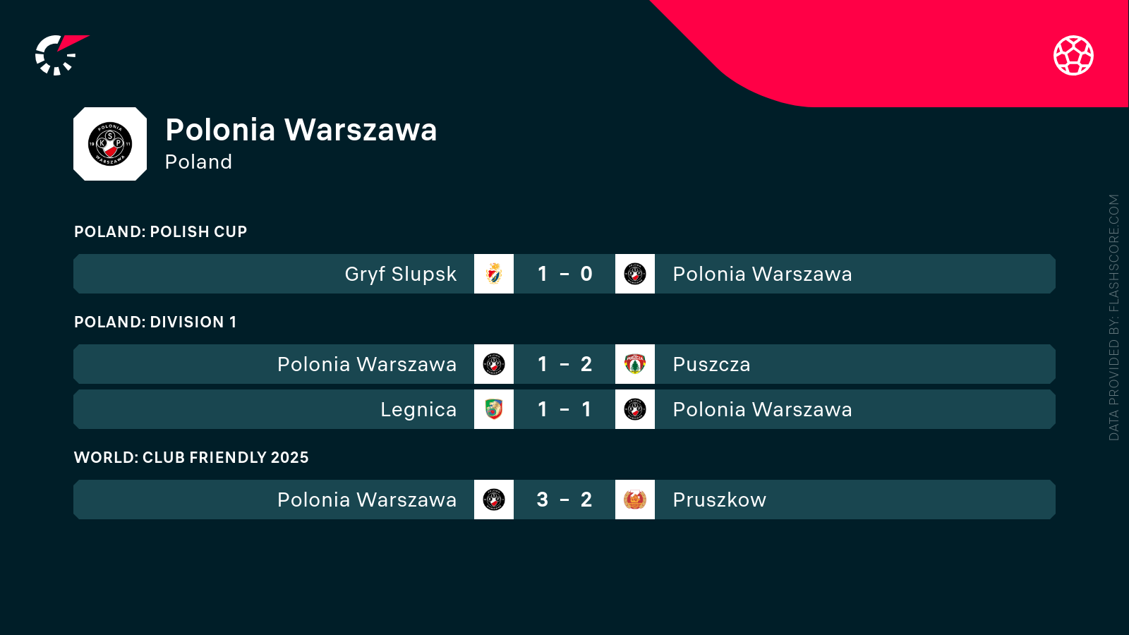 • 5 niedawnych meczów Polonii to 2 zwycięstwa, 1 remis i 2 klęski.
