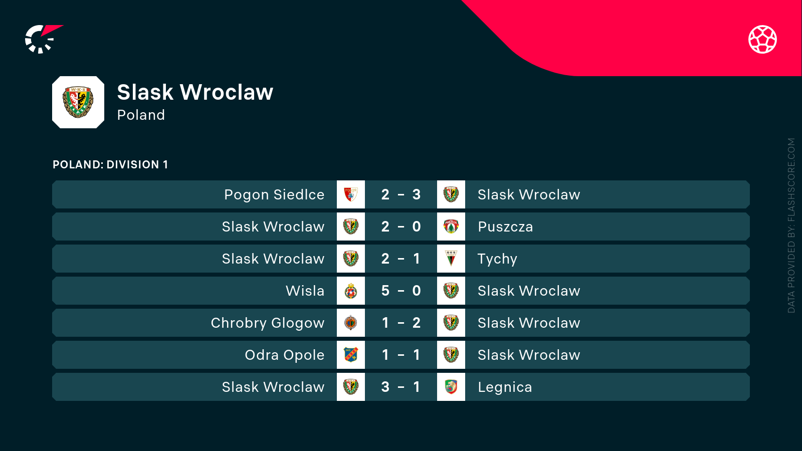 • 5 poprzednich występów Śląska to 4 wygrane i 1 klęska