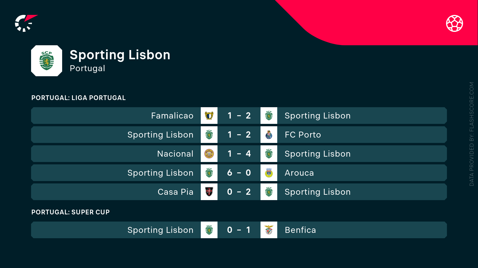 - Sporting wygrał 4 z 5 poprzednich spotkań.