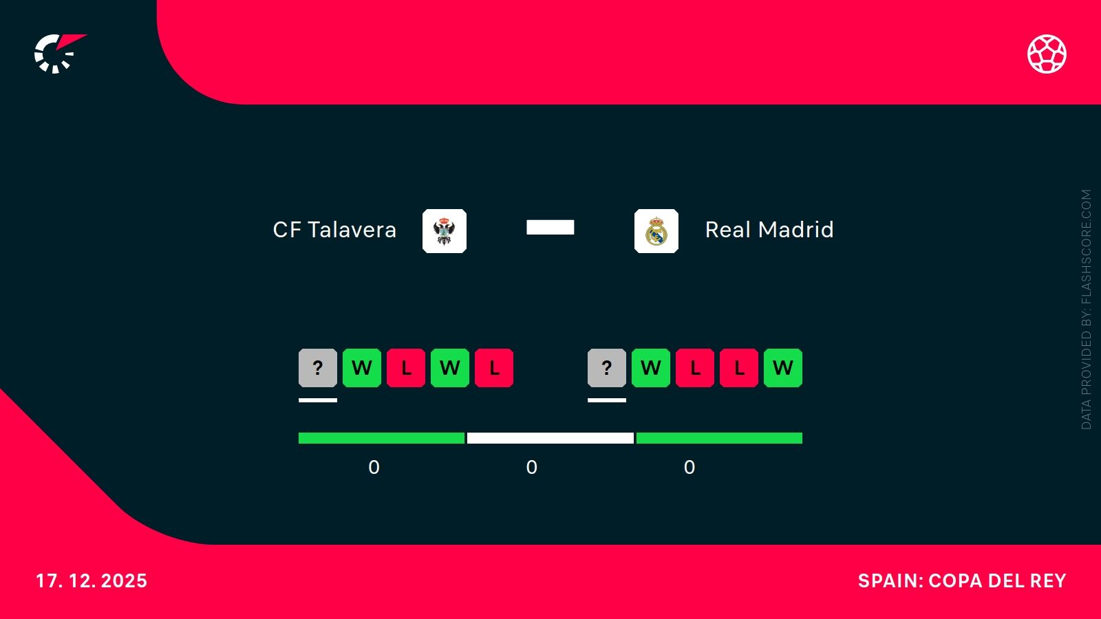 Real Madryt z kolei ma ostatnio dość burzliwy okres. Co rusz słyszy się o wewnętrznym konflikcie kilku zawodników z trenerem Xabim Alonso. Real w ostatniej kolejce La Liga z trudem wygrał 2:1 z Alaves, jednak sam obraz gry pozostawiał wiele do życzenia. Mecz ze zdecydowanie słabszą Talaverą będzie szansą dla zawodników „drugiego garnituru” na pokazanie swoich umiejętności oraz na zbudowanie pewności siebie poprzez wysokie zwycięstwo.