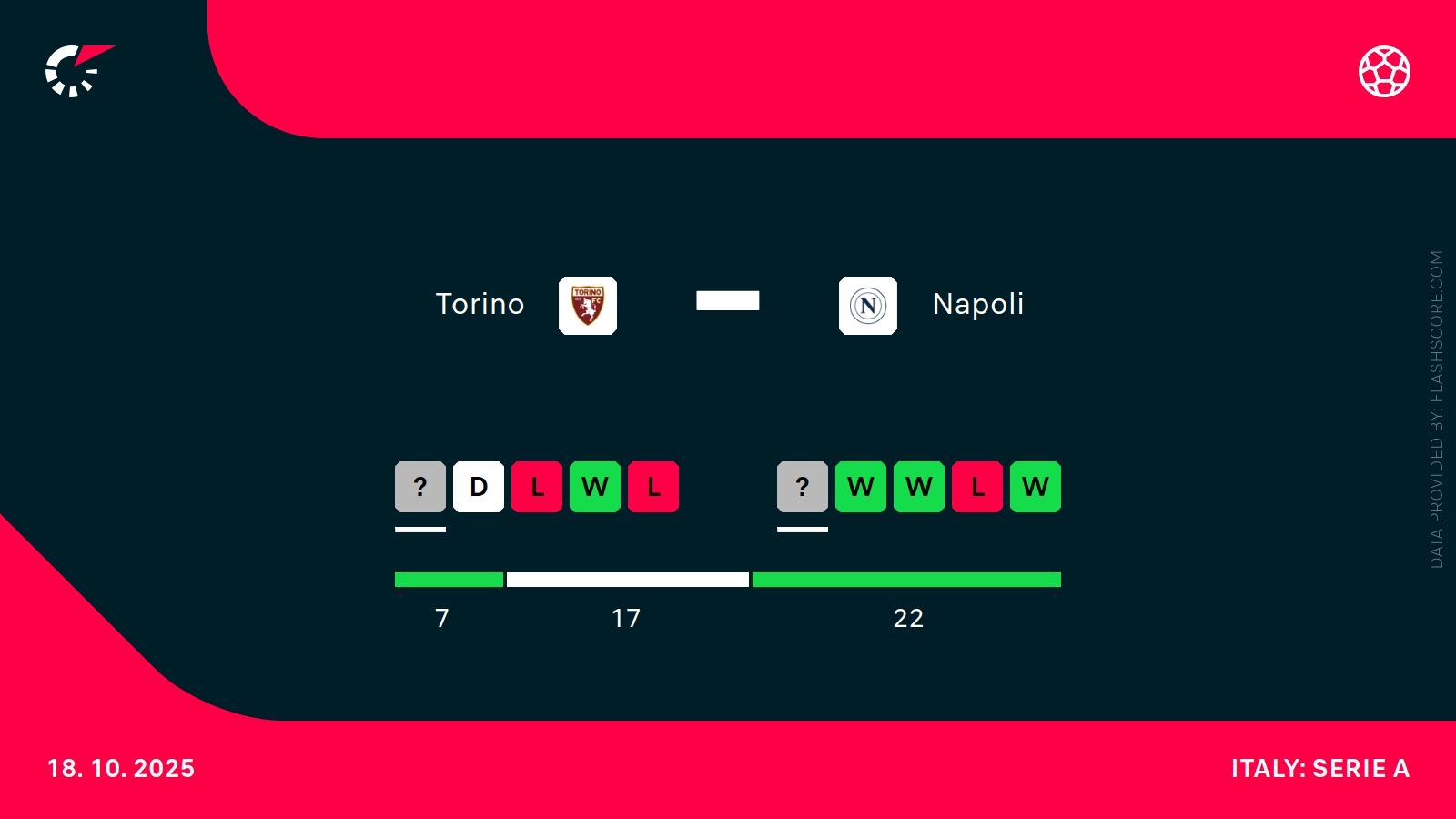 Torino wchodzi w ten mecz z pewnymi problemami. Do tej pory drużyna z Turynu zagrała tylko dwukrotnie na swoim stadionie i ani razu nie udało im się odnieść zwycięstwa. Co więcej, nie udało im się zdobyć jeszcze bramki. Torino posiada pewne problemy z przełamaniem defensywy rywali i dużym problemem będzie przełamanie się w tym spotkaniu.