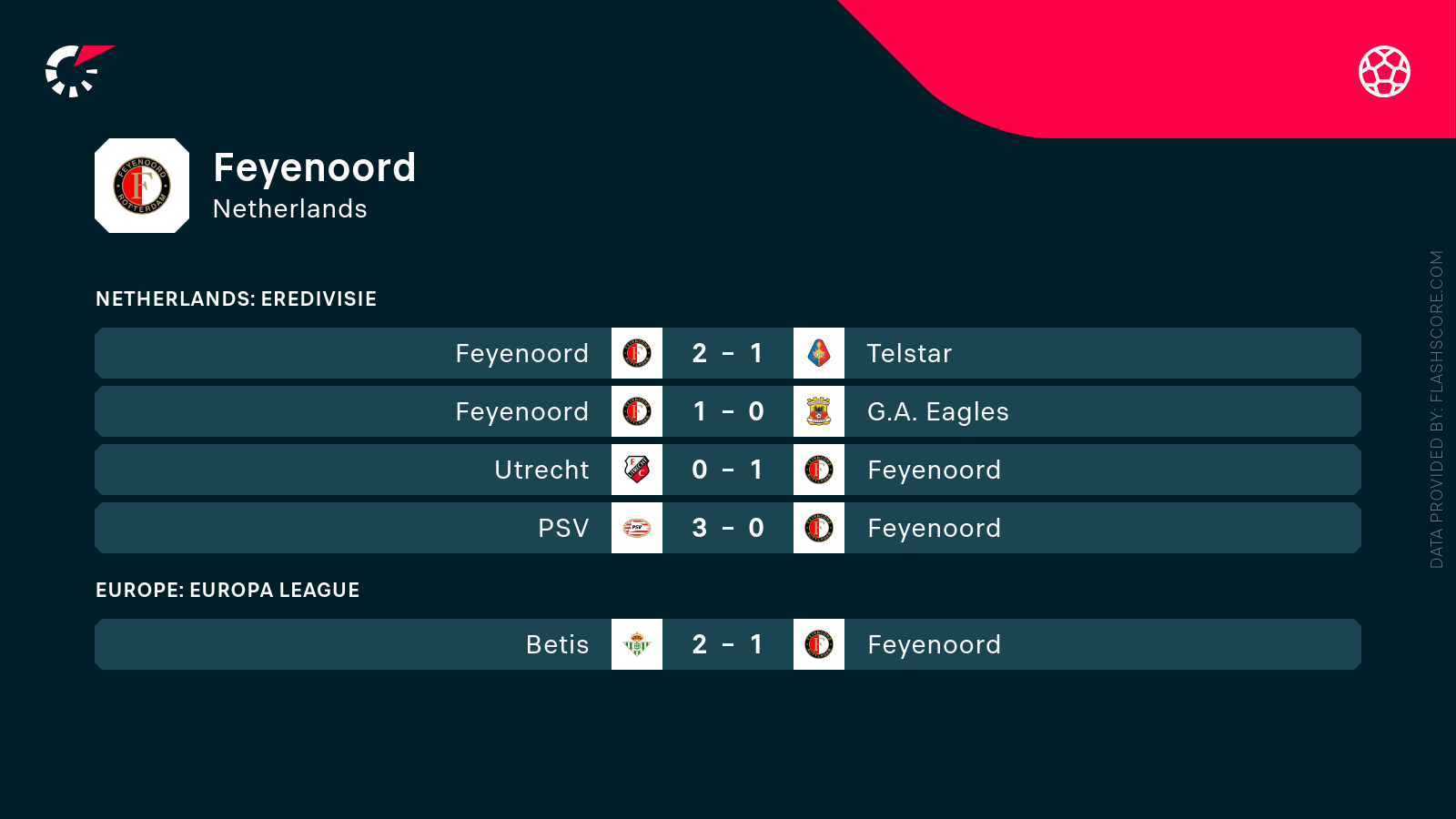 - Feyenoord legitymuje się średnią ponad 2 goli na mecz w obecnym sezonie Eredivisie.