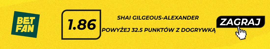 Zdecydowanym faworytem czekającej nas rywalizacji jest zespół OKC. Uważam że po zasłużonym odpoczynku, walczący w sezonie zasadniczym o tytuł MVP z Nikolą Jokiciem Shai Gilgeous-Alexander pokaże się ze świetnej strony na własnym parkiecie i poprowadzi swój zespół do zwycięstwa. W związku z tym, mój typ na to spotkanie to: Shai Gilgeous-Alexander powyżej 32.5 punktów z dogrywką.