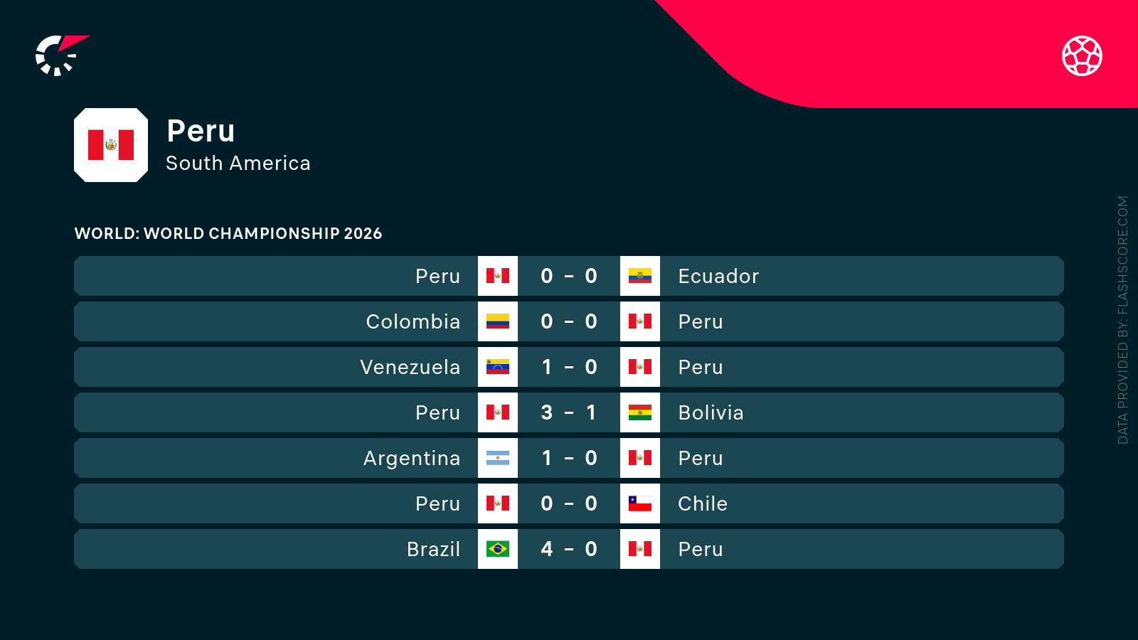 - Peru strzeliło gola w 1 z 5 niedawnych występów.