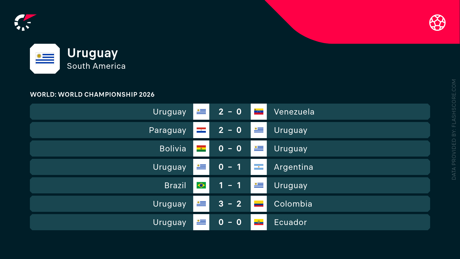 - Urugwaj zachował czyste konto w 2 z 5 poprzednich meczów.