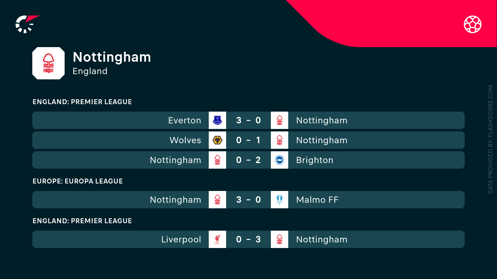 - 5 niedawnych gier Nottingham to 3 wiktorie i 2 porażki.