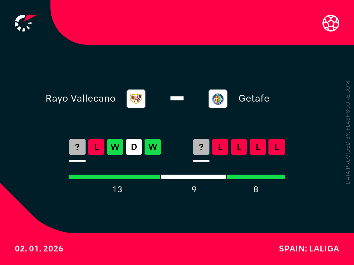 Vallecano – Getafe. Typy bukmacherskie i analiza 02.01 | La Liga