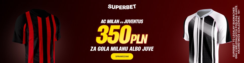 Superbet przygotował specjalną promocję dla nowych graczy, którzy zarejestrują się do Superbet z kodem promocyjnym GRAMGRUBO. Polski legalny bukmacher płaci aż 350 zł za gola Milanu albo Juventusu! Szczegóły promocji poniżej.