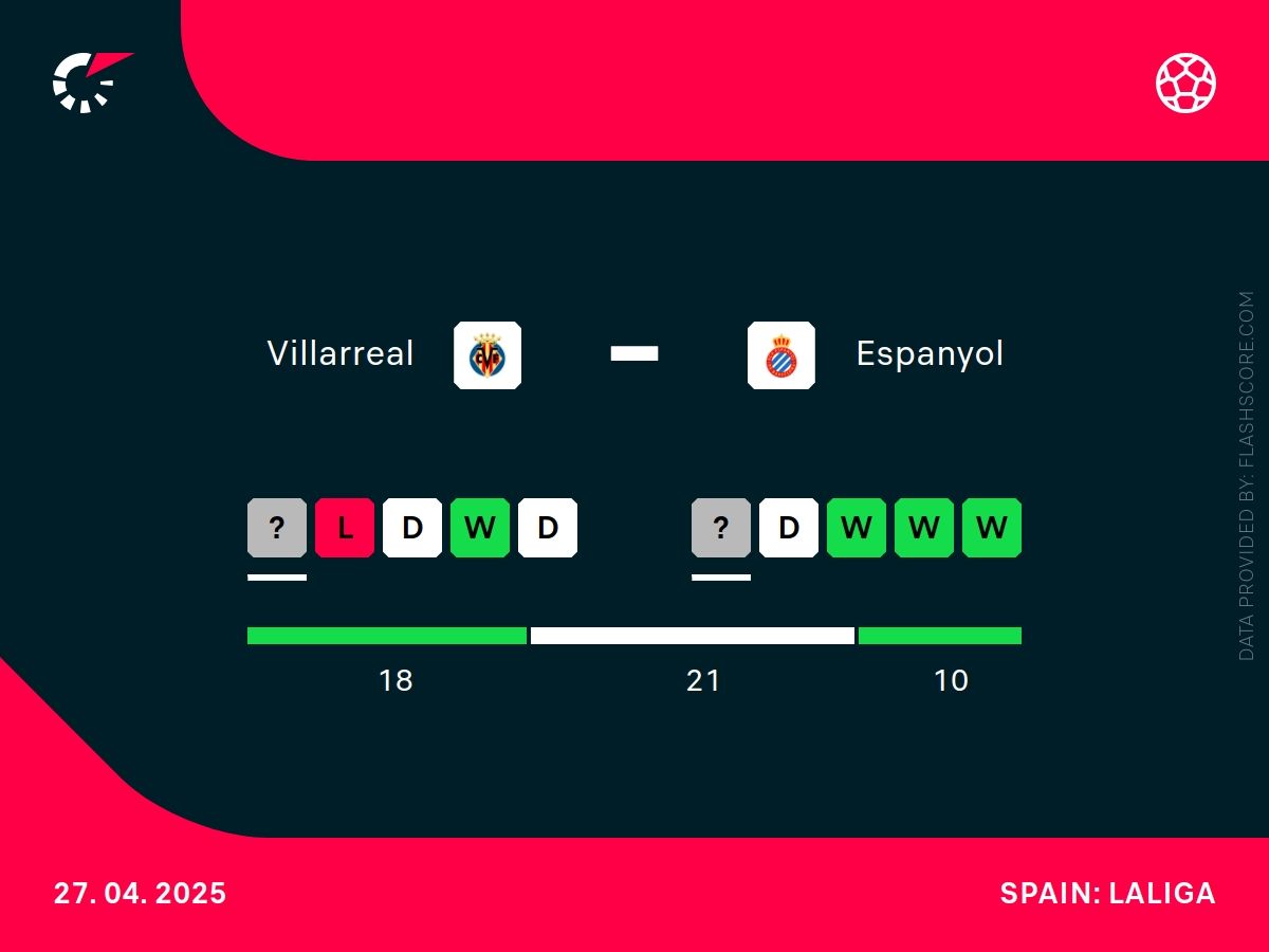 - W ostatnich pięciu meczach Villarreal prezentuje mieszaną formę, notując 2 zwycięstwa, 2 remisy i 1 porażkę.