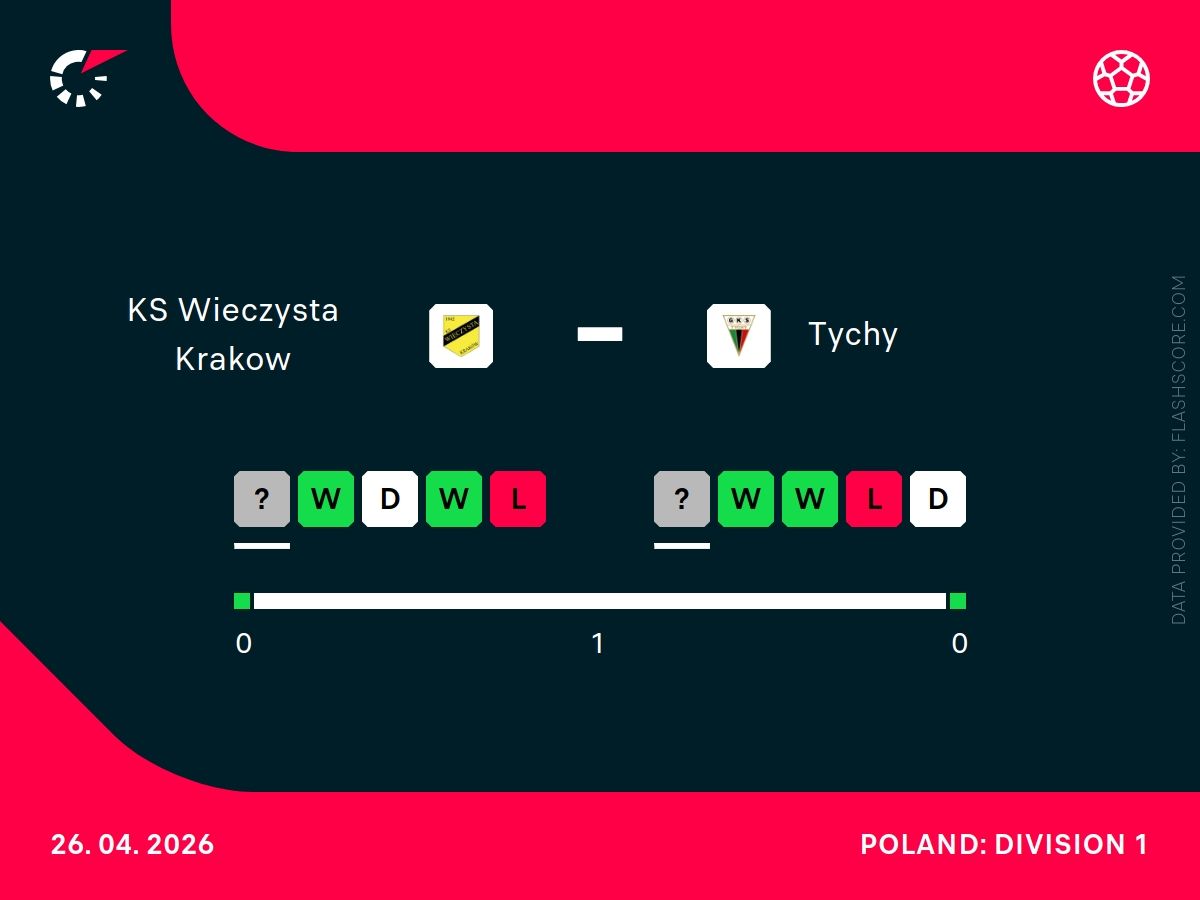 - Wieczysta wygrała 13 meczów w obecnej kampanii, podczas gdy Tychy wygrały ich zaledwie 5