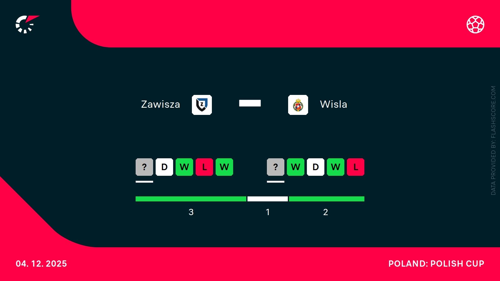 Gdzie obejrzeć transmisję z tego starcia? Mecz Zawisza Bydgoszcz – Wisła Kraków odbędzie się na Stadionie im. Zdzisława Krzyszkowiaka w Bydgoszczy, 4 grudnia o godzinie 20:45. Spotkanie będzie można oglądać na antenie TVP Sport. Wynik będzie można śledzić na stronie flashscore.com oraz w aplikacji Flashscore!